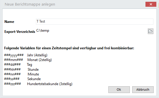 Der Name des Export-Verzeichnisses kann dabei mit einem Zeitstempel versehen werden.
